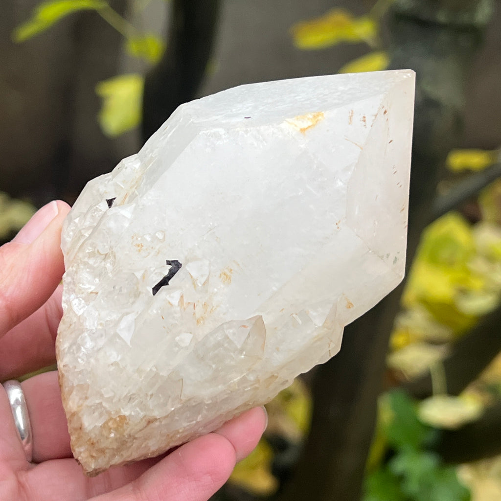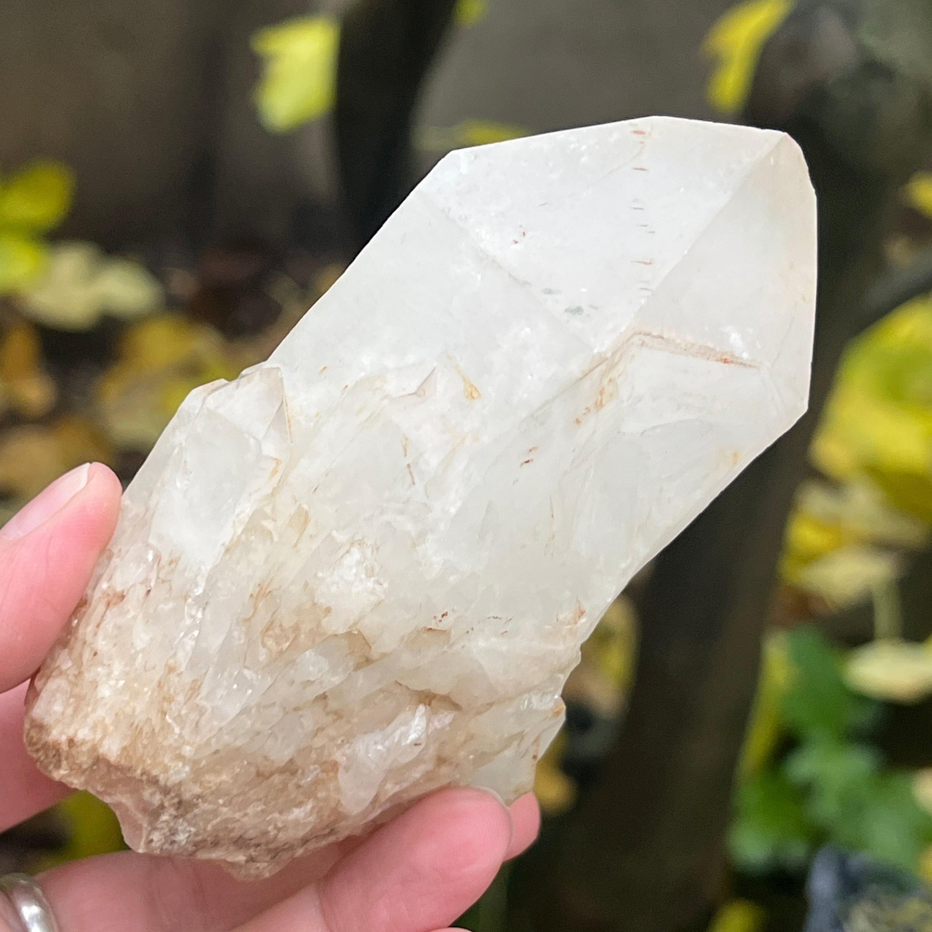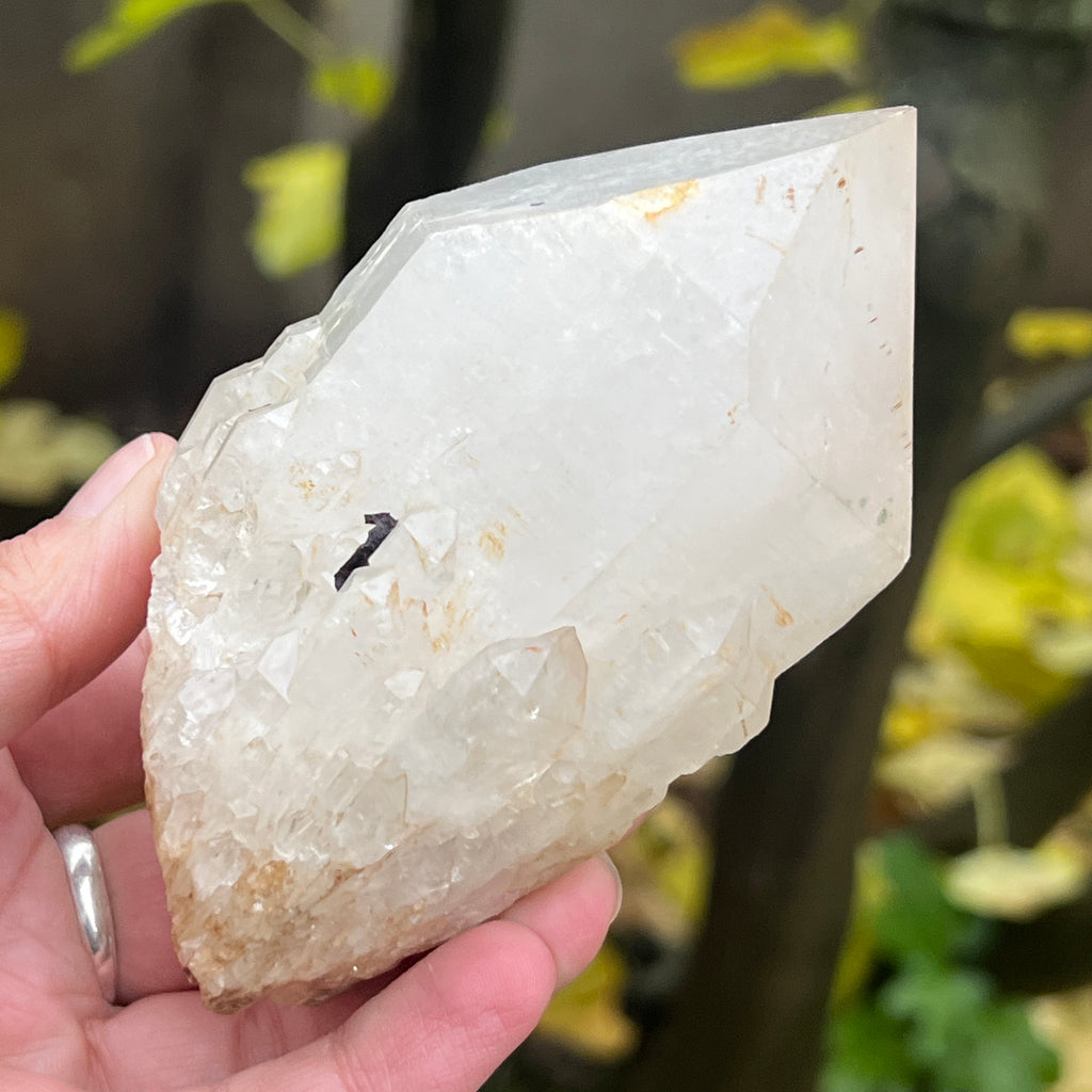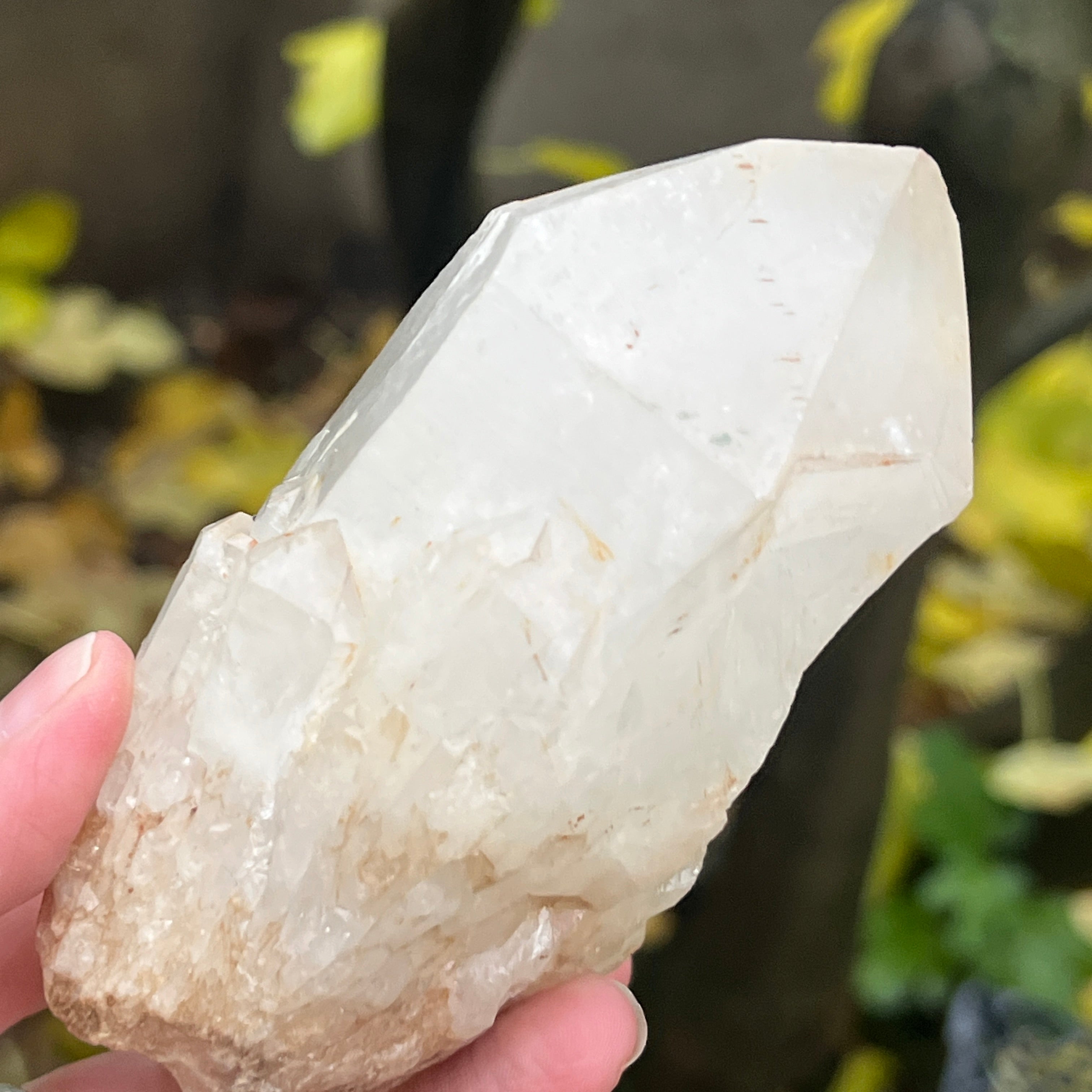 Un vârf care pare sculptat de lumină însăși. Cuartul celest, cunoscut și ca cuart lumânare, îmbină forța unui cristal de cuarț cu blândețea și strălucirea unei flăcări interioare. Forma sa unică, asemănătoare unui ananas cristalin, emană o energie de purificare profundă și de conectare cu planurile superioare ale conștiinței.