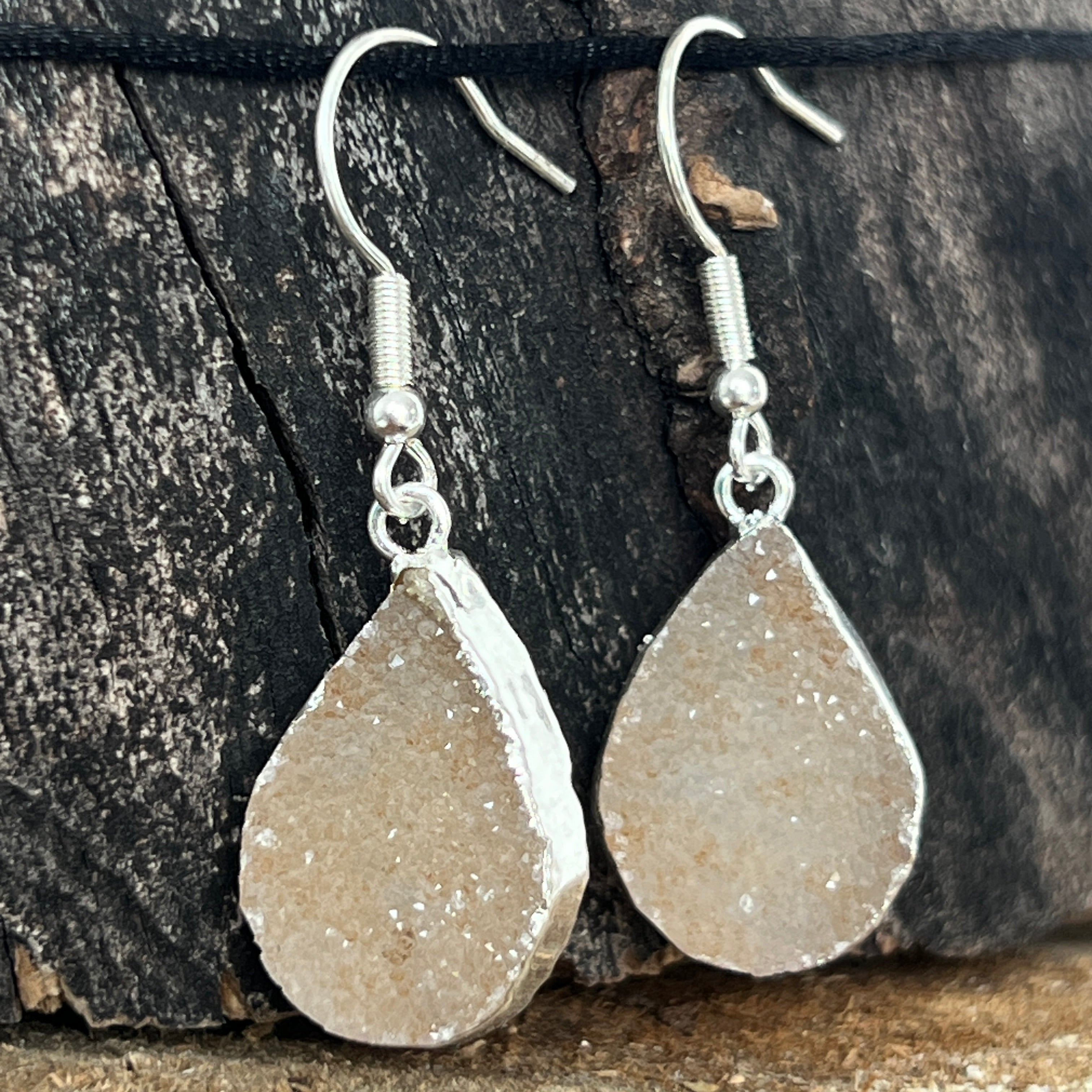 Beschreibung - Silber vergoldete Achat druzy Ohrringe aus Brasilien Modell 3