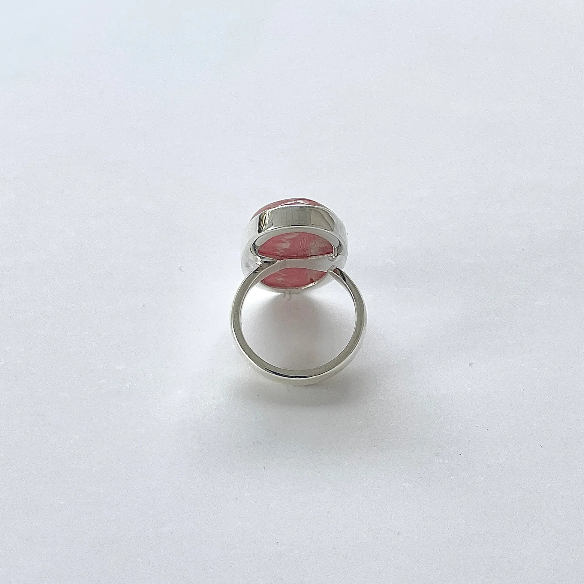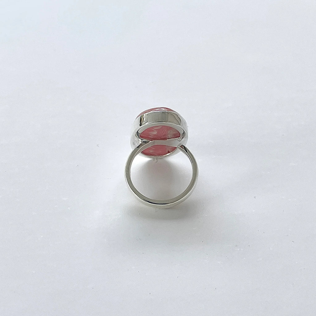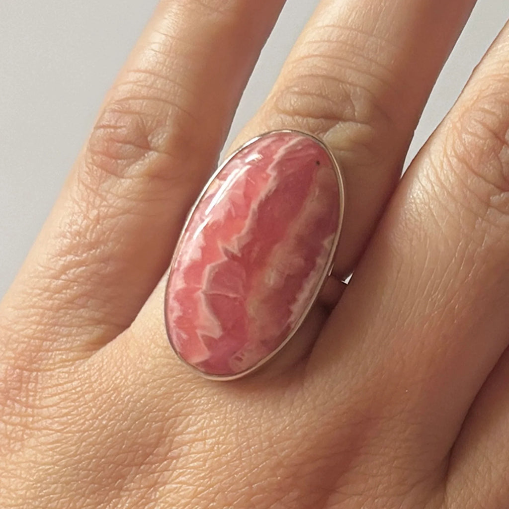 Ein Ring, der sich kombiniert Die natürliche Schönheit des Rhodokrosits Mit der Raffinesse von Silber, geschaffen für diejenigen, die ein Symbol der Liebe, Harmonie und inneren Gleichgewichts tragen möchten.