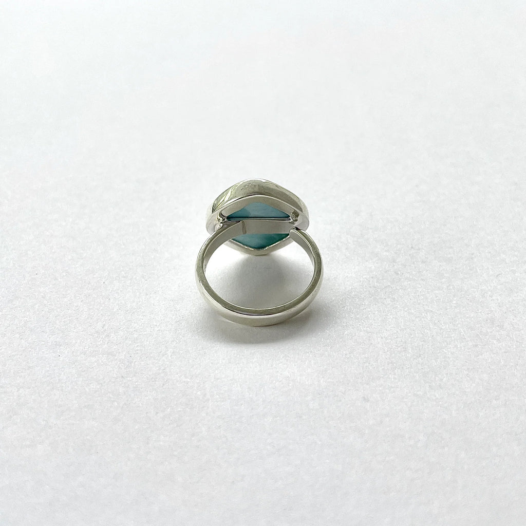 Beschreibung - Verstellbarer silberner Larimar Steinring Modell 1