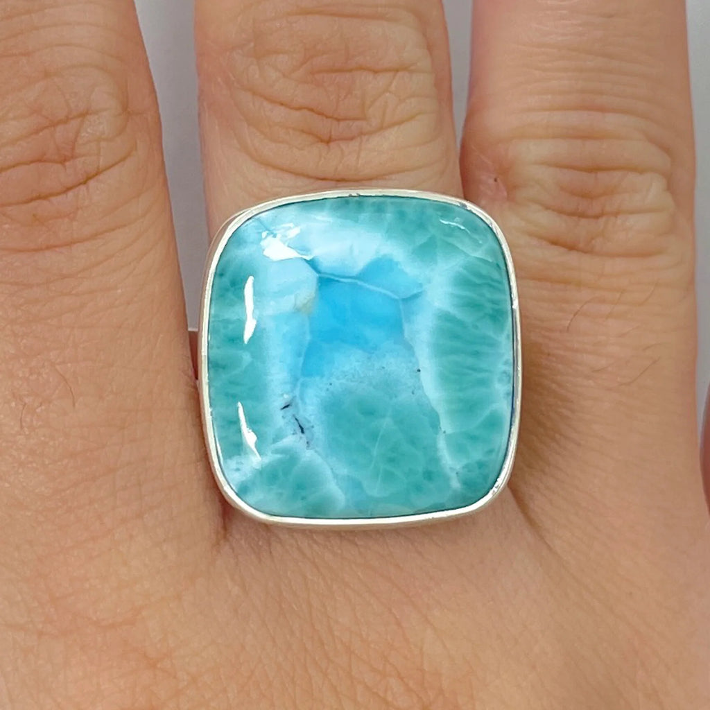 Rezensionen- Verstellbarer silberner Larimar Steinring Modell 7