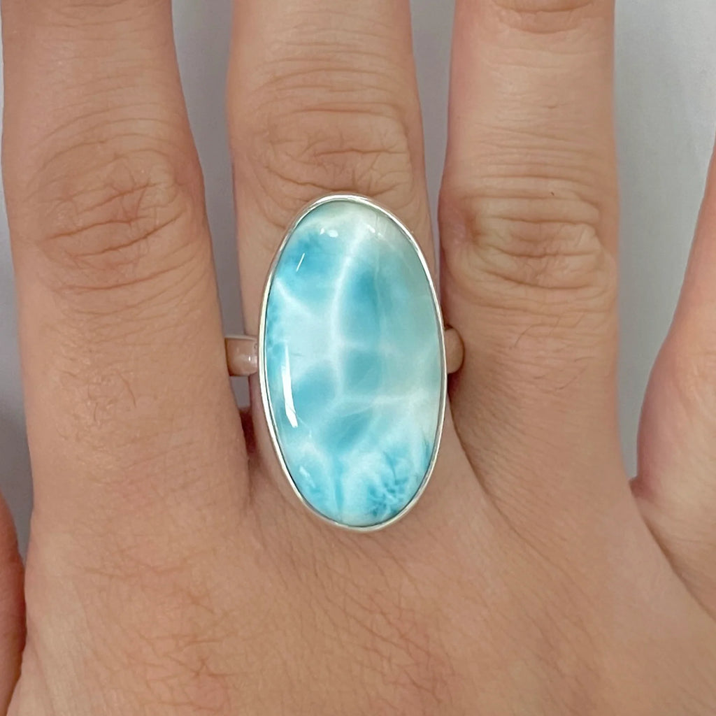 Rezensionen- Verstellbarer silberner Larimar Steinring Modell 8