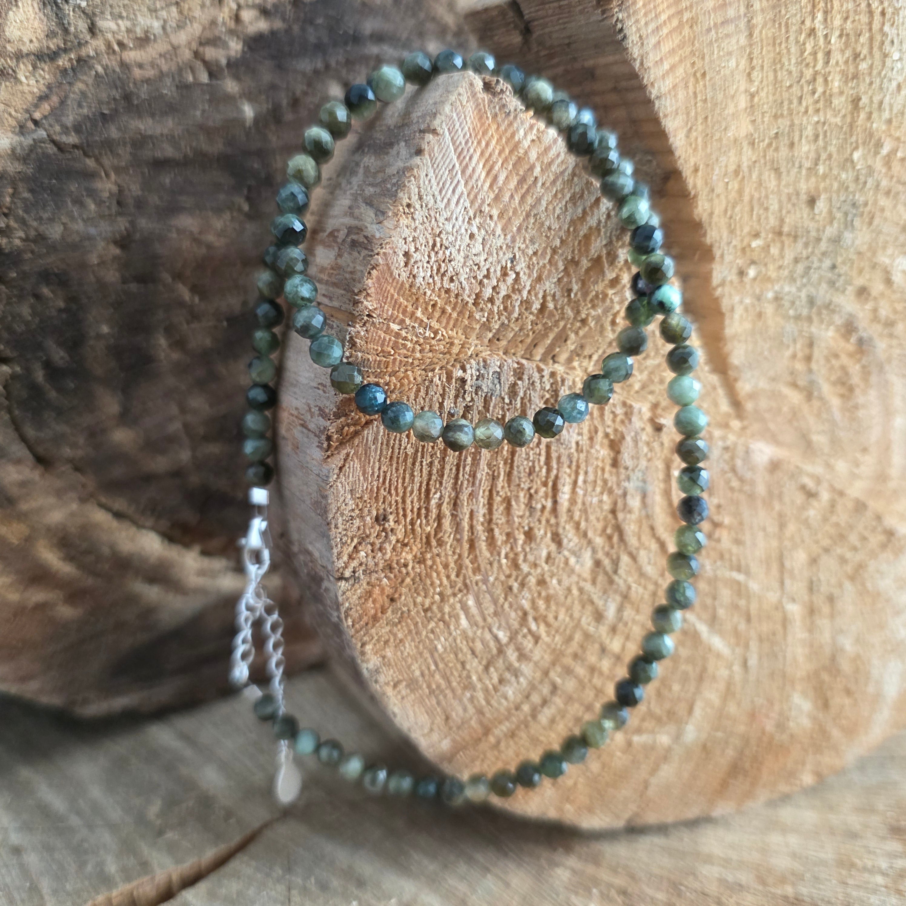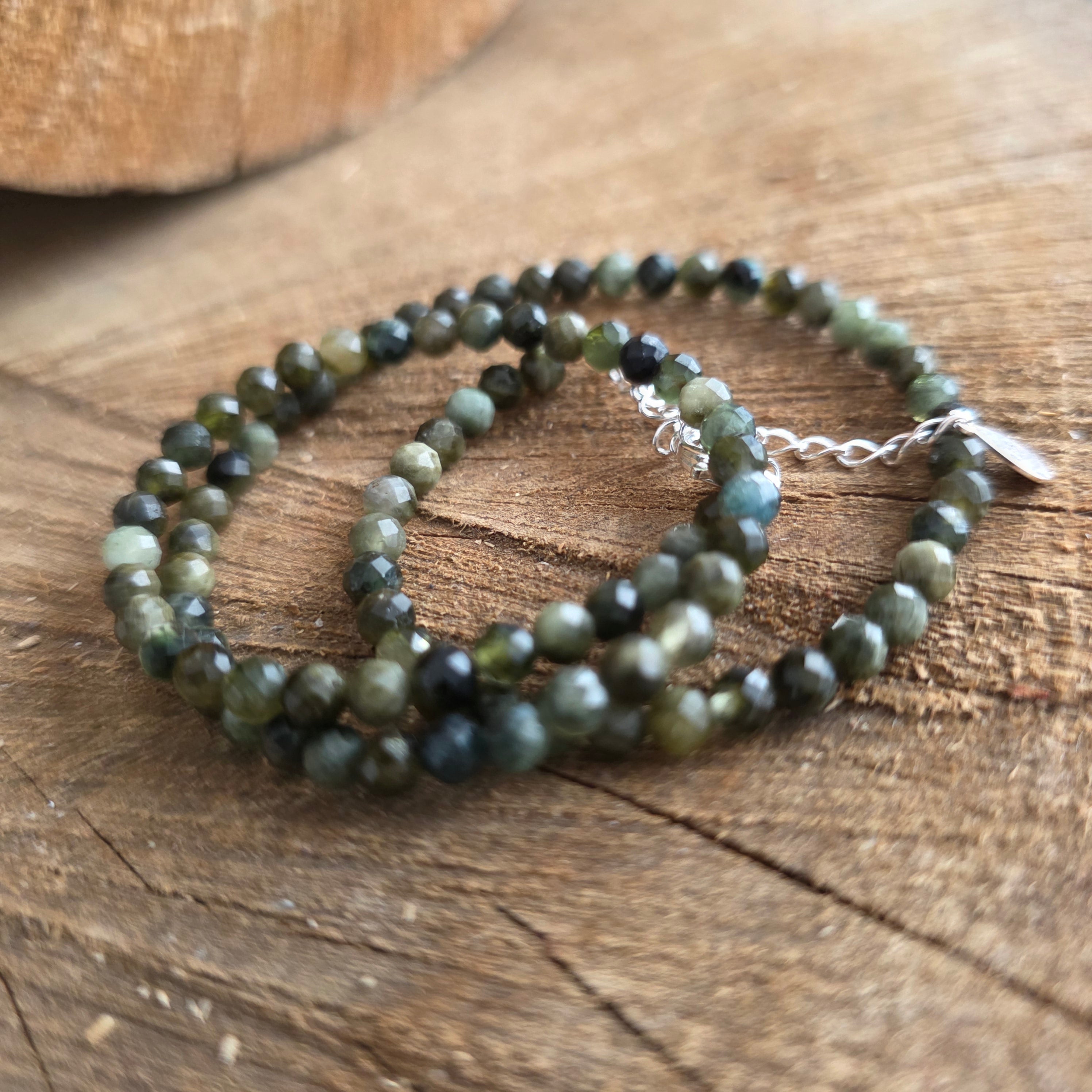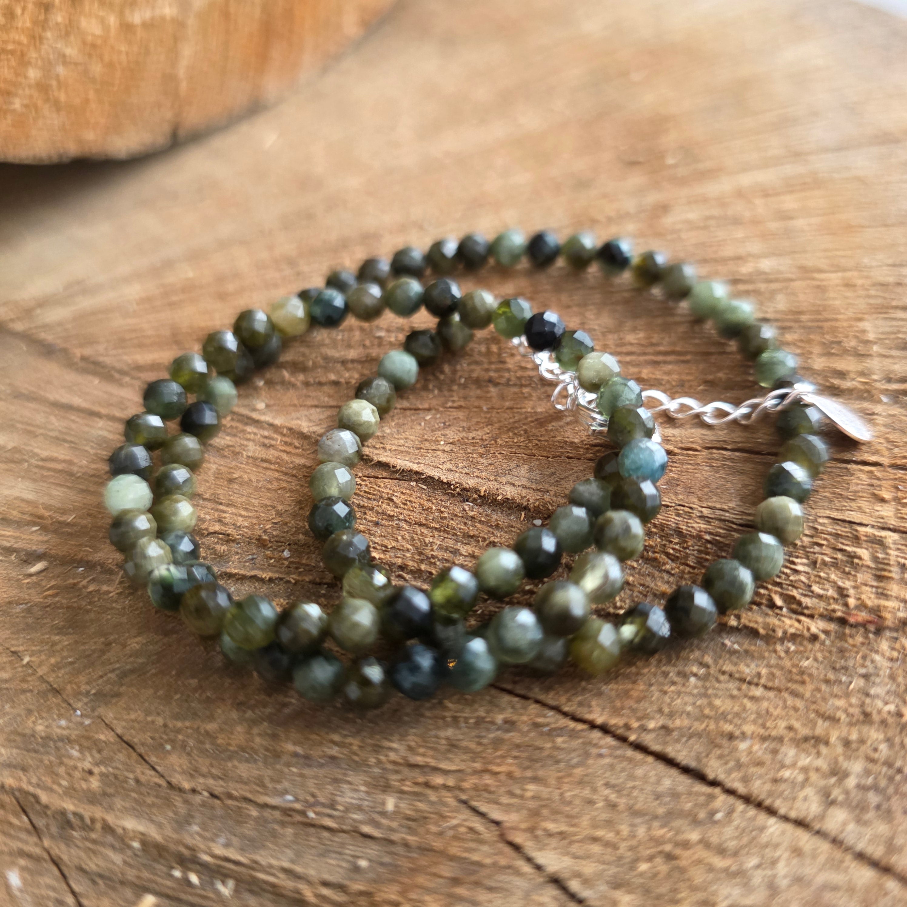 Materialien: 2 mm facettierter natürlicher grüner Turmalin, 925er Silber