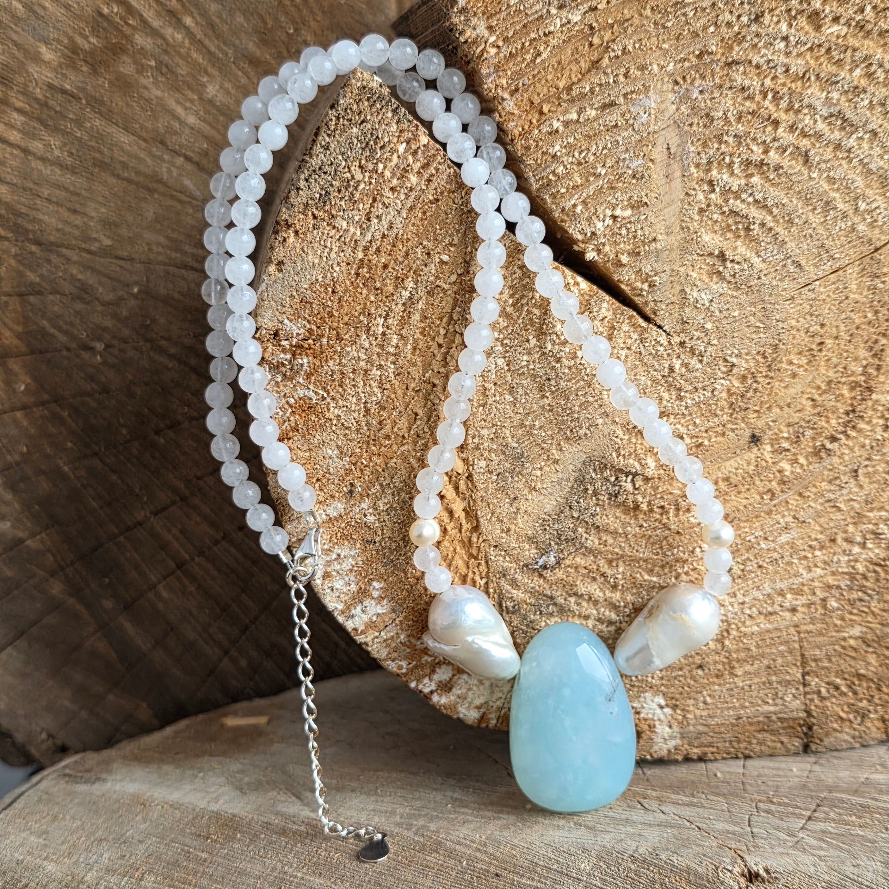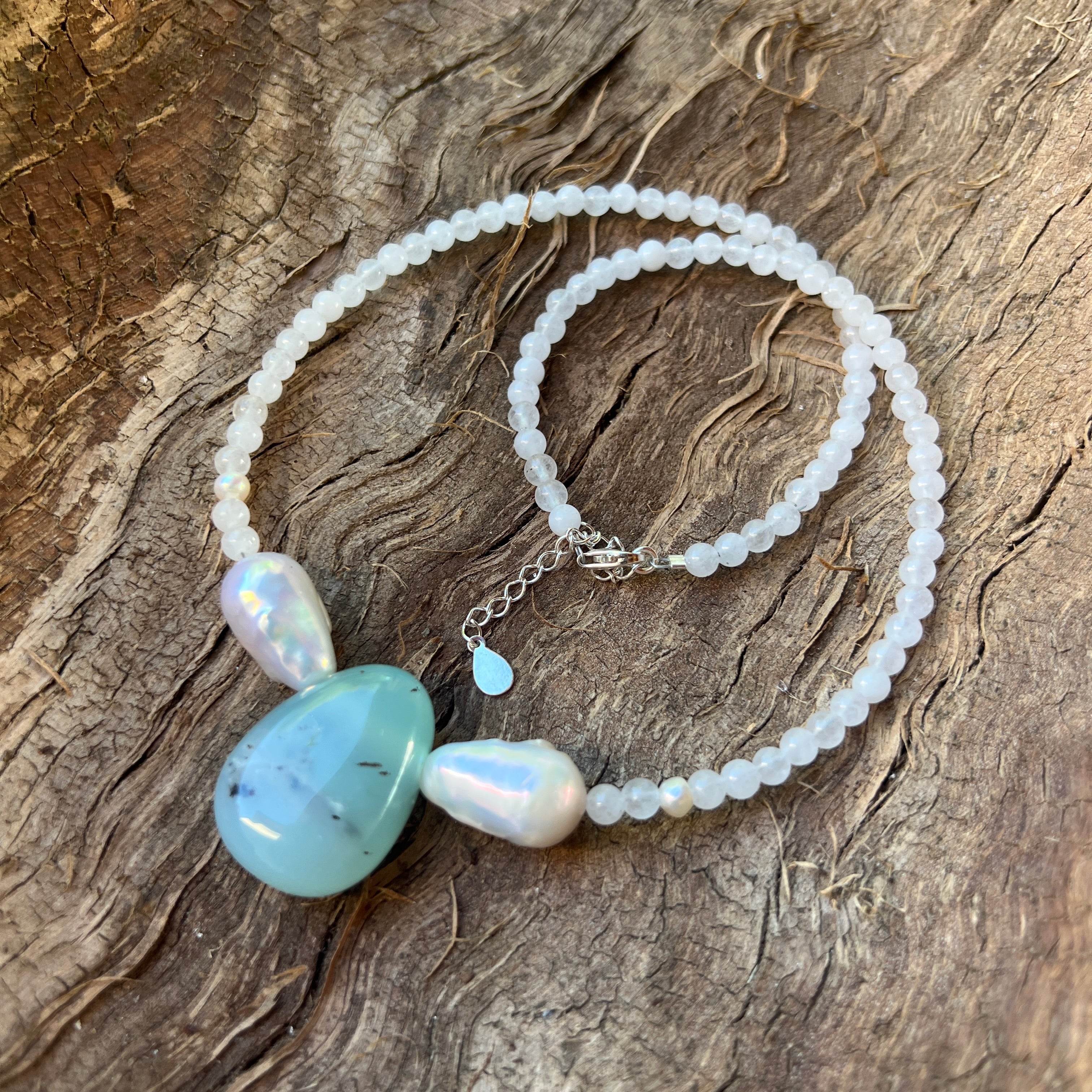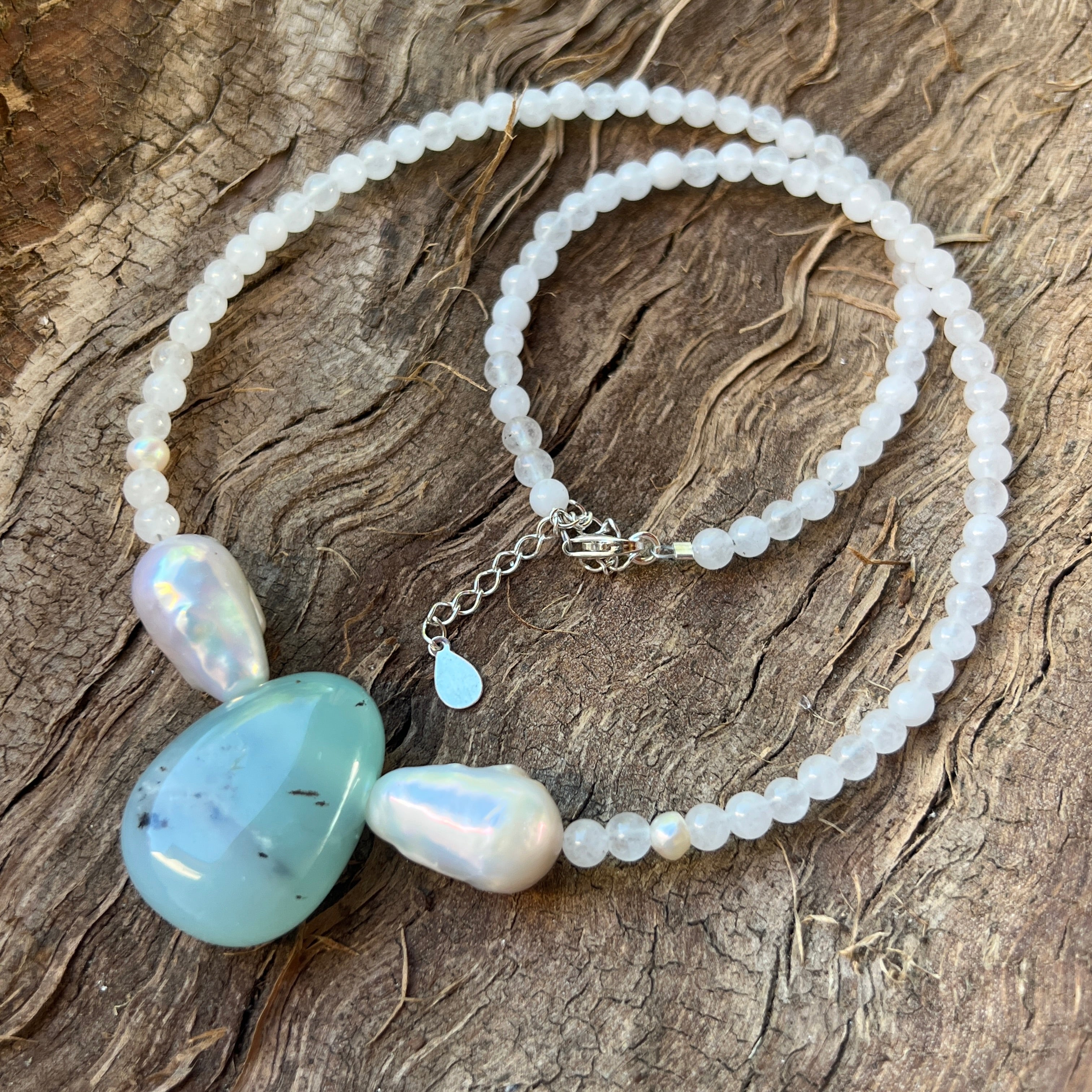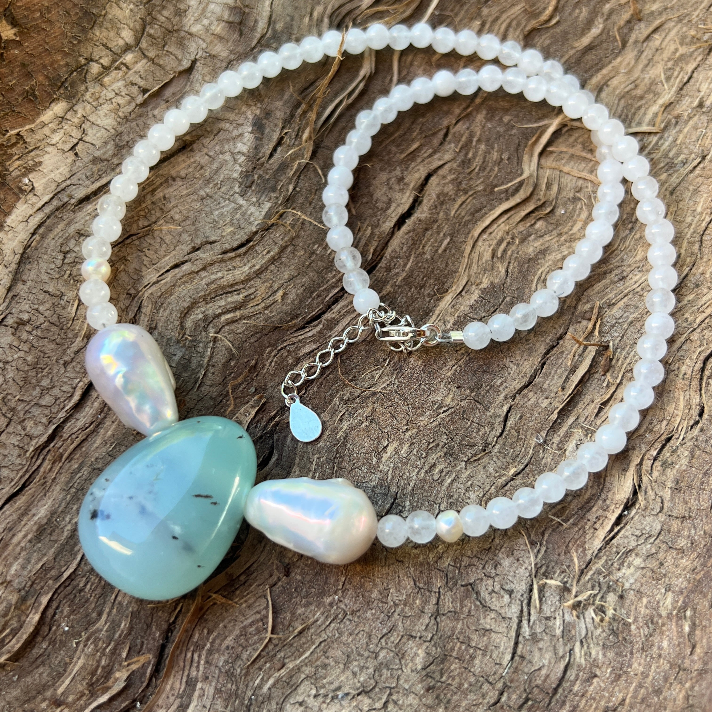 Weiße Jade -Halskette, Perlen und Crisopraz Serene#28