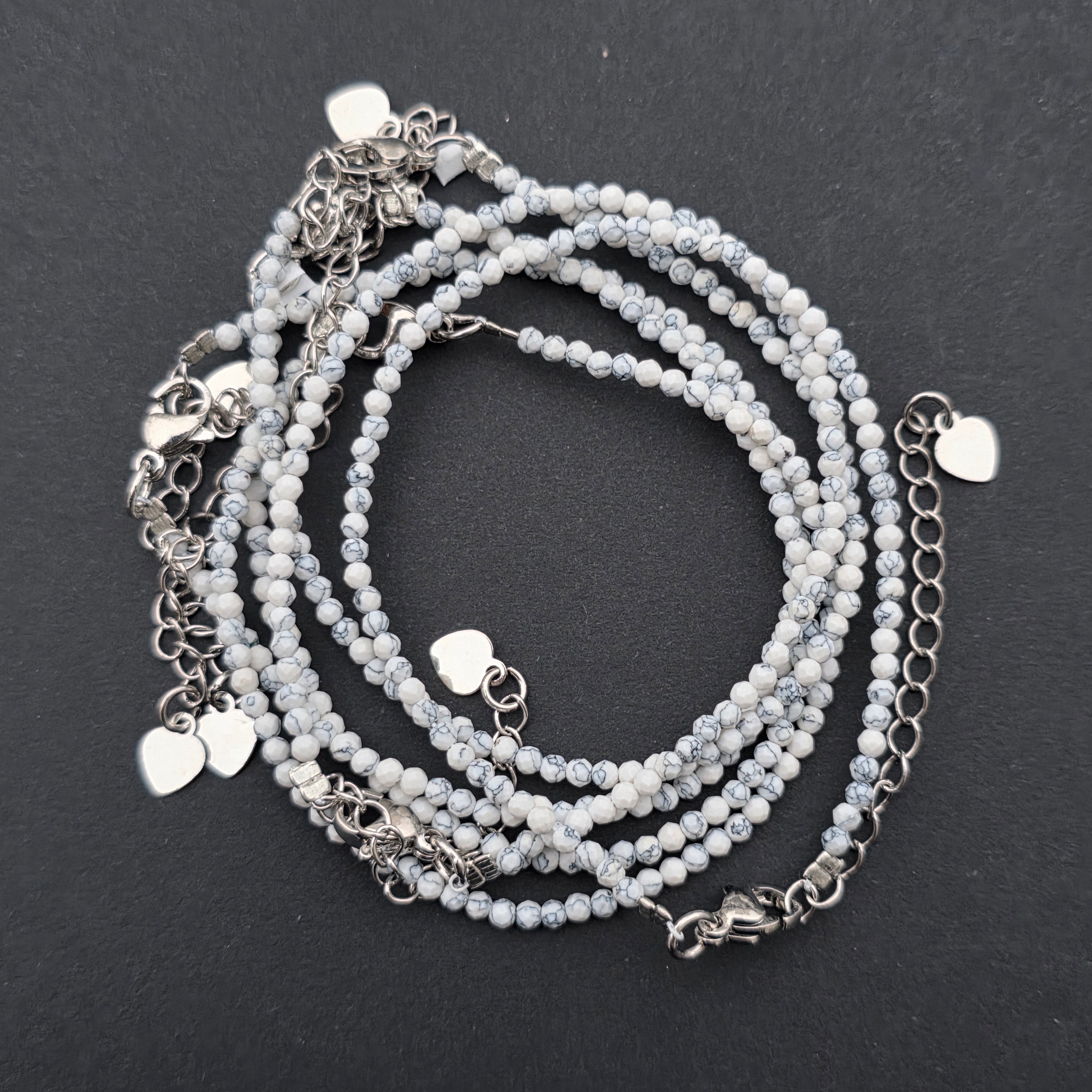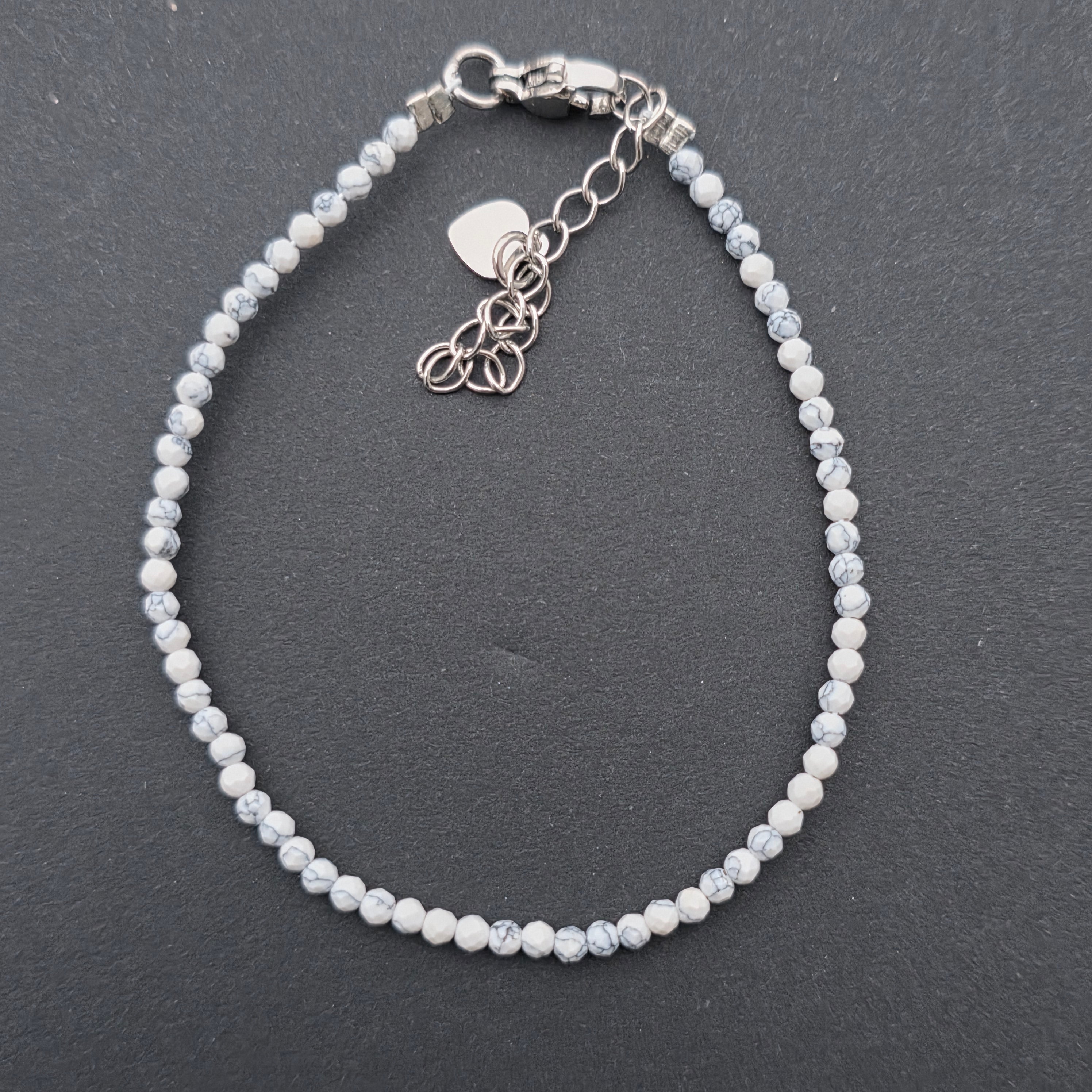 Beschreibung - Weißer Howlitschmuck 2 mm verstellbares Armband