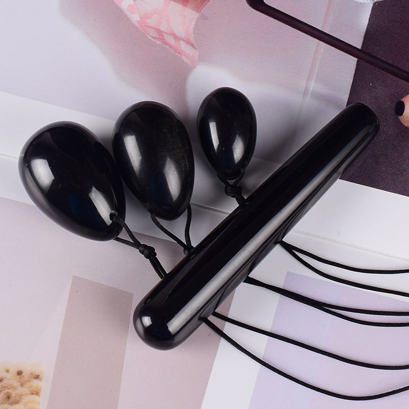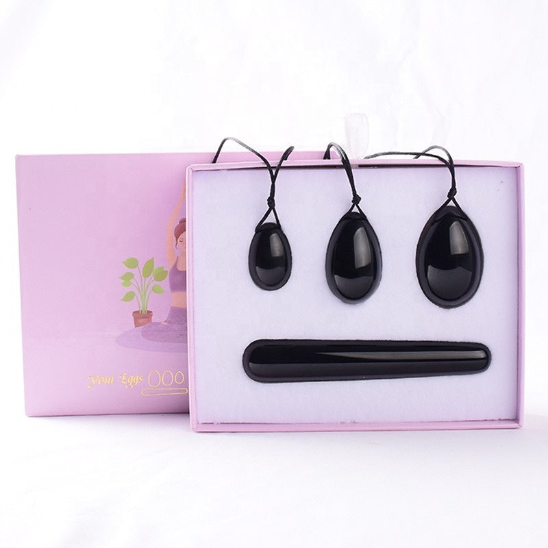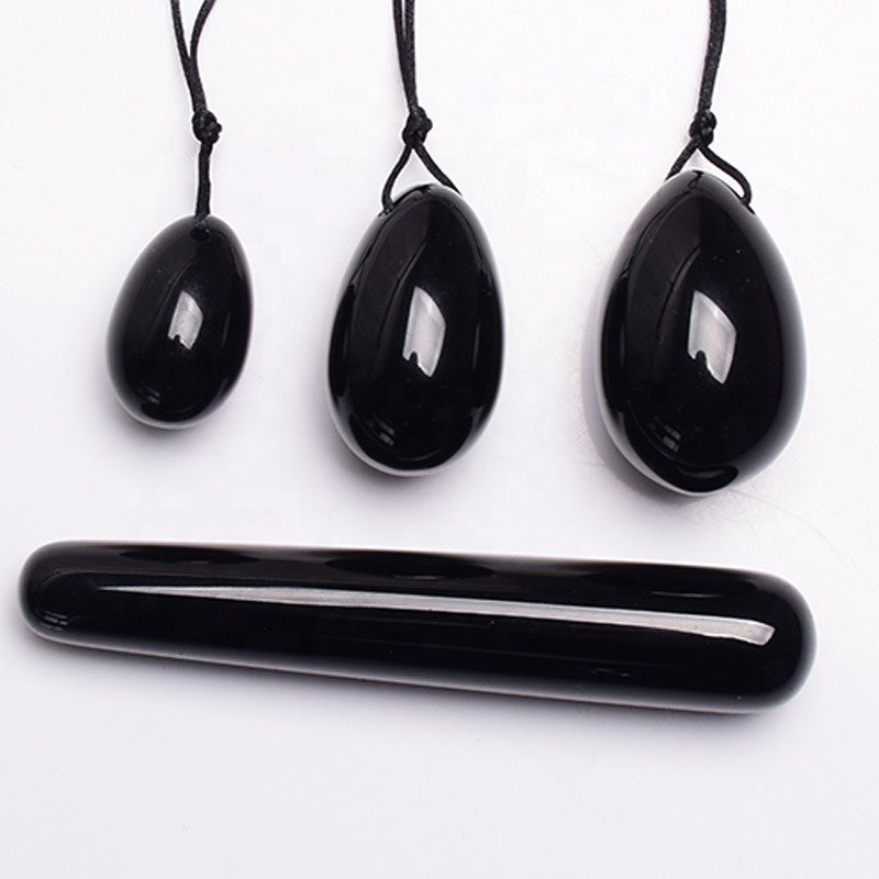 Yoni-Eier und Obsidian-Stab - Set mit 3 Stück
